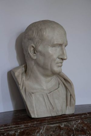 Porträtbüste des antiken römischen Politikers, Philosophen und Redners Marcus Tullius Cicero (106 v. Chr. - 43 v. Chr.); Kopie nach der antiken Büste in den Kapitolinischen Museen, Rom.