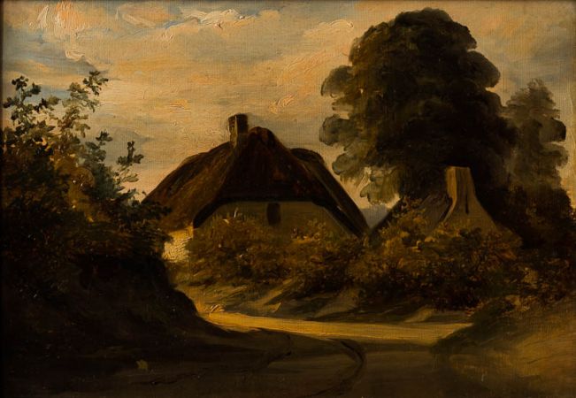 Bauernhöfe mit Baumgruppe.