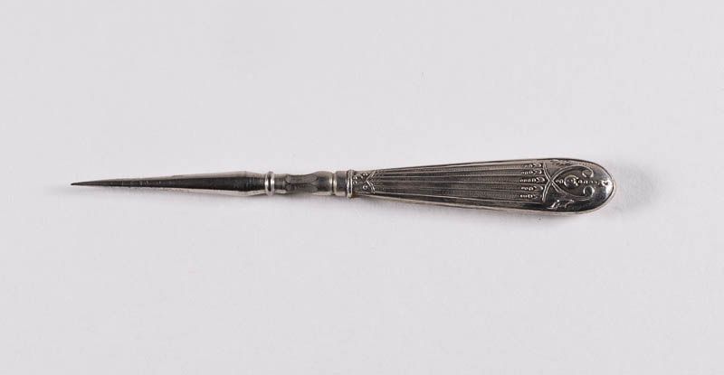 Garniturteil; Zahnstocher, mit Strichen dekorierter Griff.