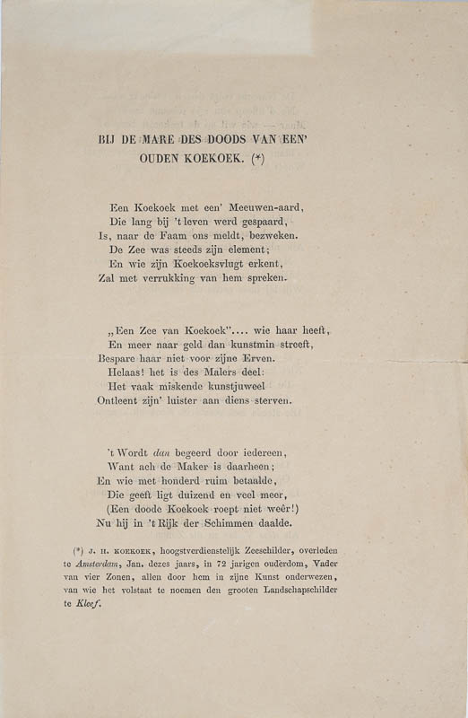 Gedicht auf den Tod von Johannes Hermanus Koekkoek