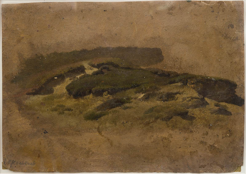 Studie eines Geländeabschnittes mit Heide,Moos, Felsen.