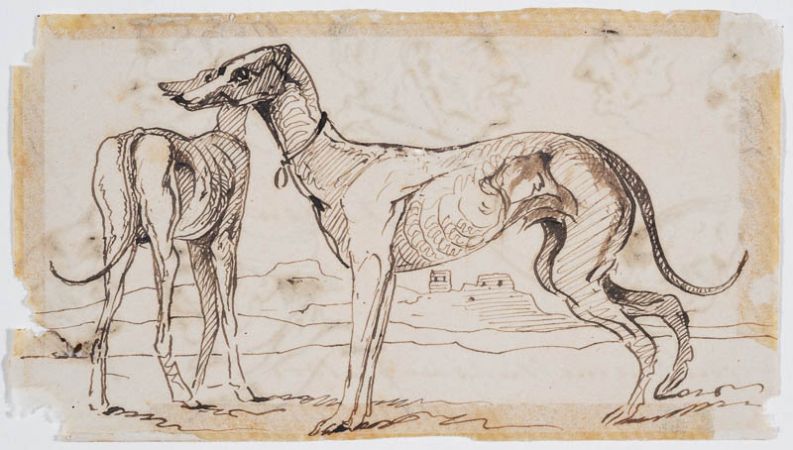 Vs.: Studie zweier Windhunde; Rs: Sieben Charakerkopfstudien.