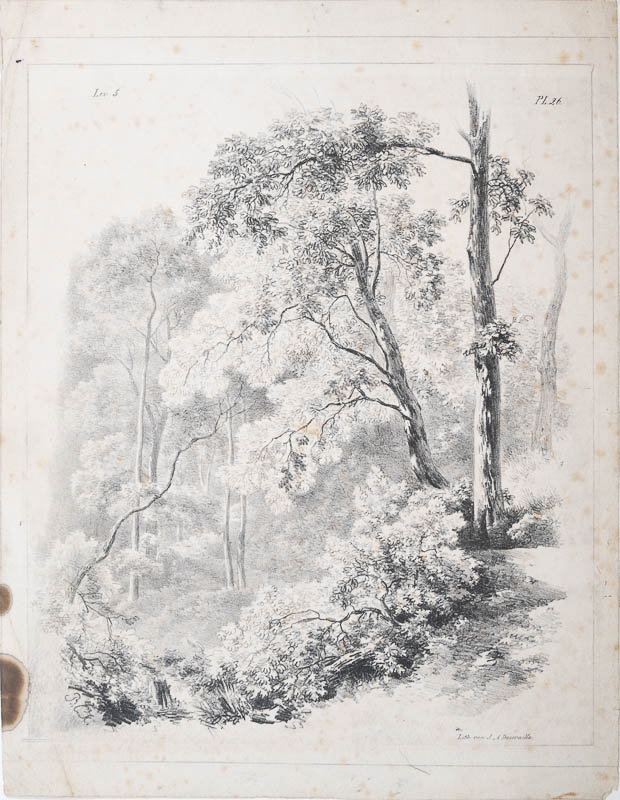 Landschaftsstudien: Waldansicht; aus "Landschap Studien" Ausgabe Koekkoek / Daiwaille 5. Lev. Pl. 26 (Inv.nr. 0875); nach B.C. Koekkoek und von ihm selbst mit Bleistift umrahmt und linksunten mit Bleistift ergänzt.