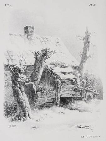 Landschaftsstudien / landschapstudies, Bauernhaus im Schnee; 20. Blatt von 59 Lithographien.