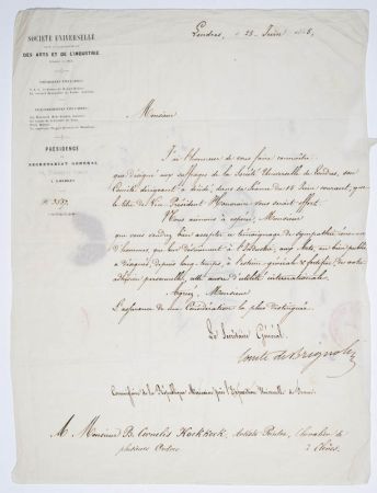 Verleihung des Titels "Ehrenvizepräsident', 28. Juni 1855.