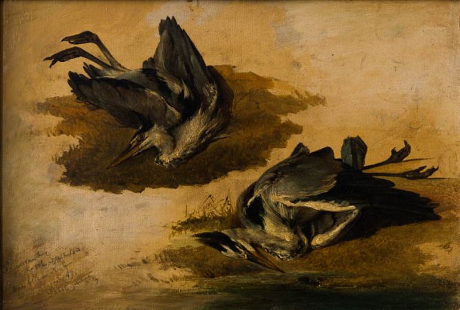 Zwei Studien eines toten Blauen Reihers in der Nähe von Rotterdam.
