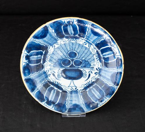 6 Wandteller, blau dekoriert mit Pfau-Vase; Marke an der Unterseite: wahrscheinlich 3 Glöckchen.