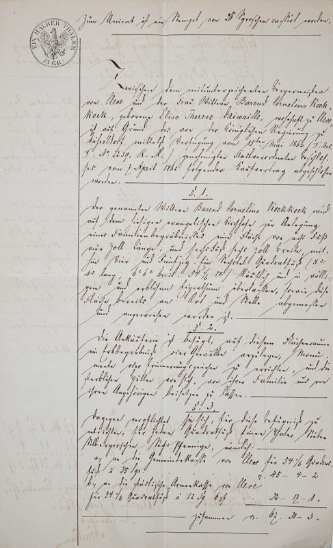unterschrieben von Bürgermeister Wilhelm Arnold König