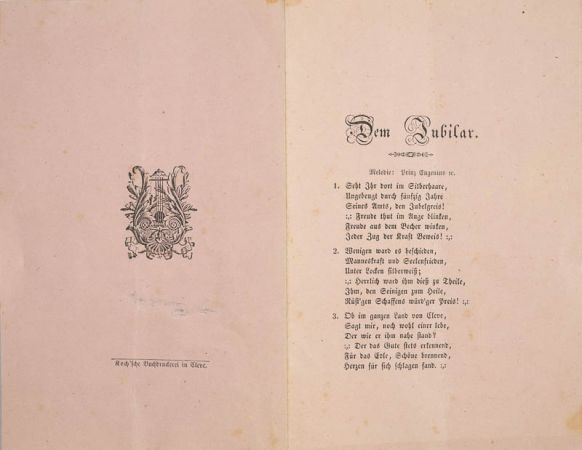 Druck (Gedicht) und Handschrift in Tinte (Brief)