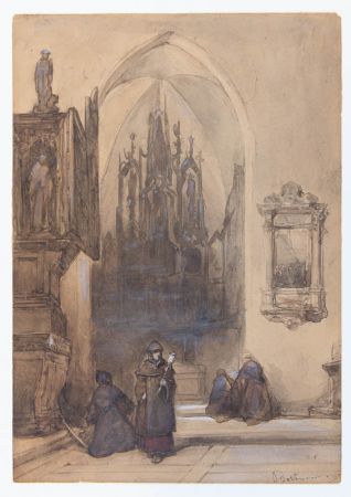 Betende Mönche im Nordchor von St. Nicolai, Kalkar, Juni 1850.