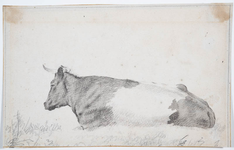 Ruhendes Rind, von der Seite gesehen, nach links.