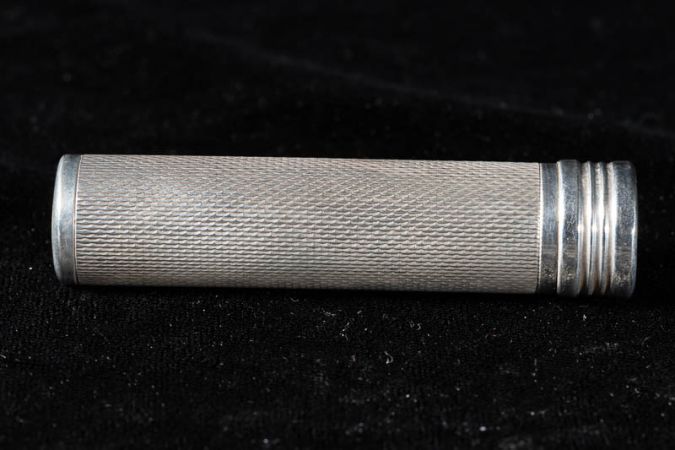 Zylindrischer Behälter; unteres Teil ausziehbar; schraffiert, unten profiliert.