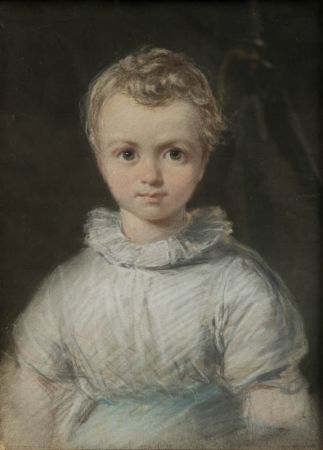 Halbporträt Vorderansicht von Adele Koekkoek als Kind in weißem Kleid.