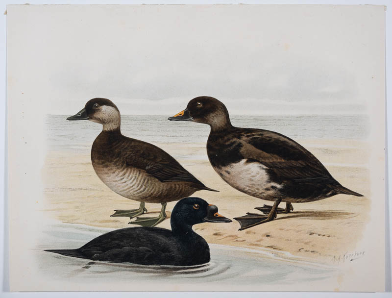 Die Trauerente, Oidemia nigra (Linnaeus); Abbildung aus "Ornithologia Neerlandica"; Plaat 78. Herausgeber Daniël van Oort (1876-1933)
