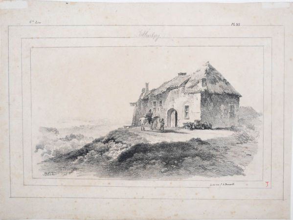 Landschaftsstudien: Wirtschaft auf dem Eltenerberg; aus "Landschap Studien" Ausgabe Koekkoek / Daiwaille 6. Lev. Pl. 35 (Inv.nr. 0910); nach B.C. Koekkoek und von ihm selbst mit Bleistift umrahmt und beschriftet.