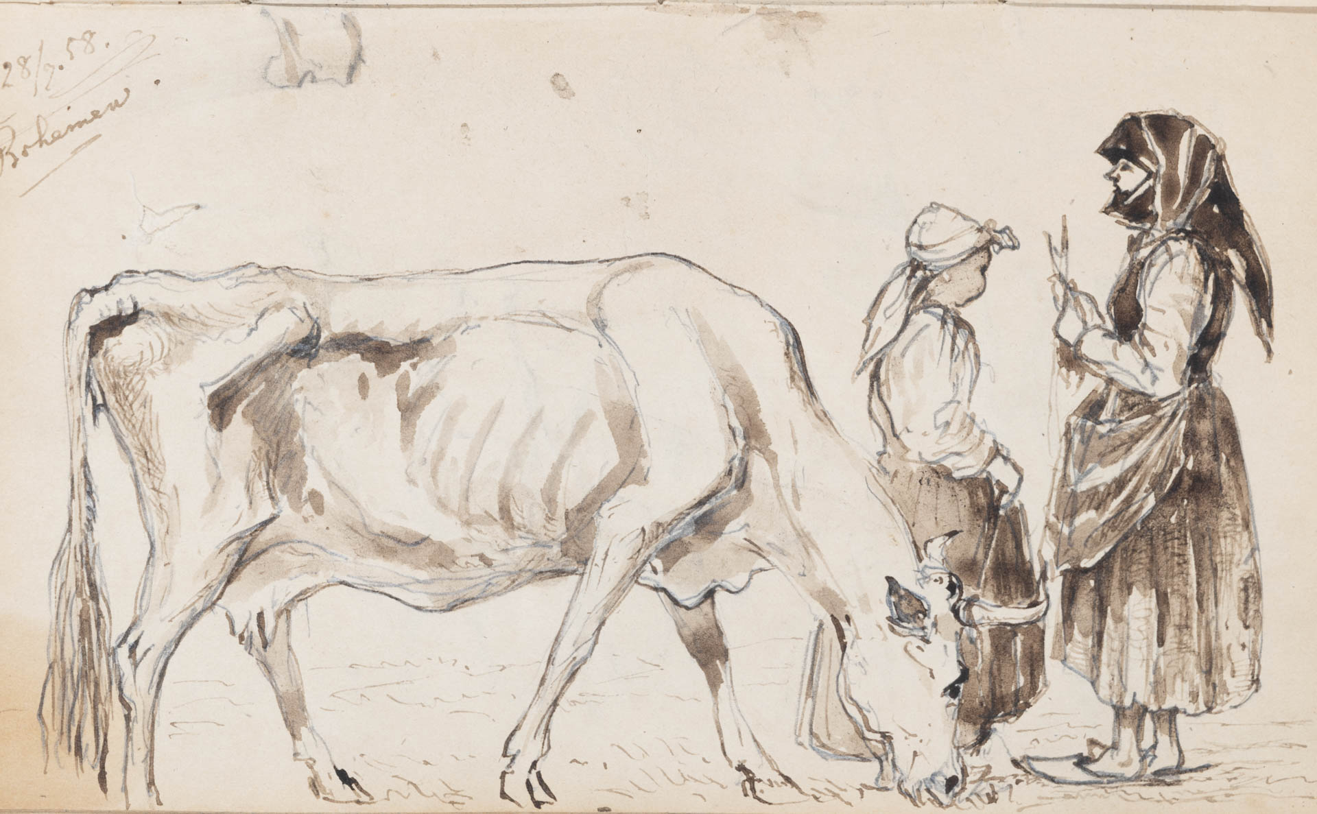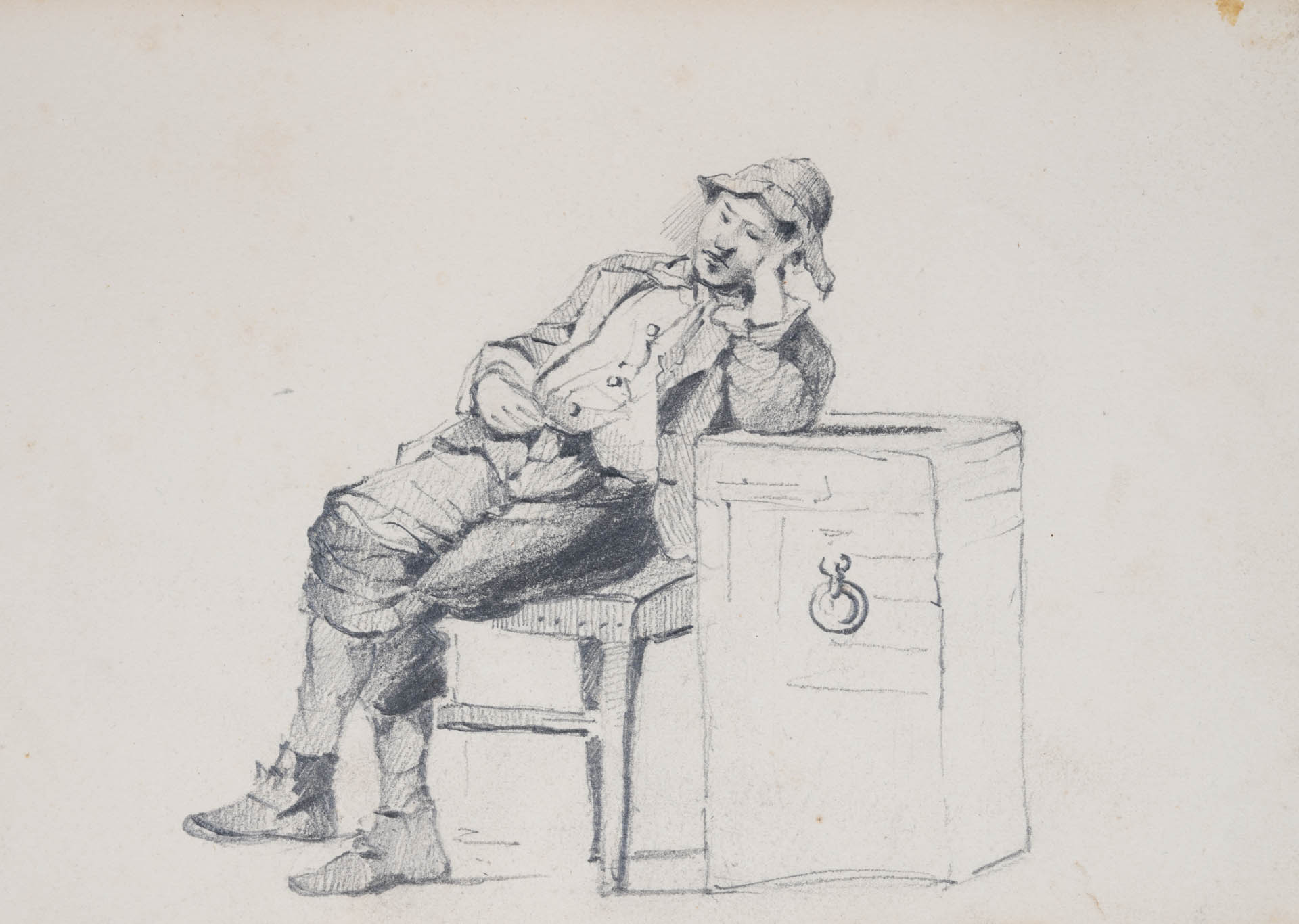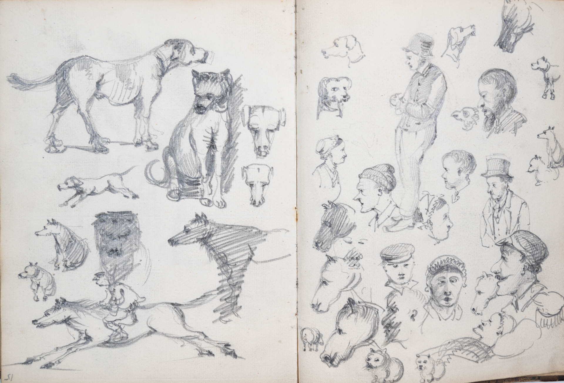 Skizzenbücher sind besonders spannend, da sie den unmittelbaren ersten künstlerischen Ausdruck zeigen. Sie entstehen spontan aus der direkten Beobachtung und haben eine Bandbreite von der Umrisszeichnung bis hin zu einer ausgearbeiteten Studie. Verschiedene Techniken werden angewandt: Bleistift, Kreide, Feder, Pinsel – in Sepiabraun, Schwarz oder mit Aquarellfarbe.