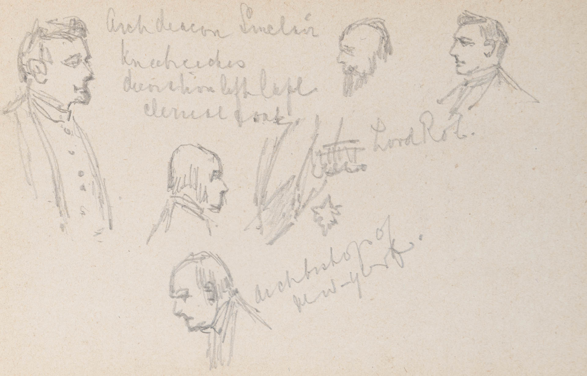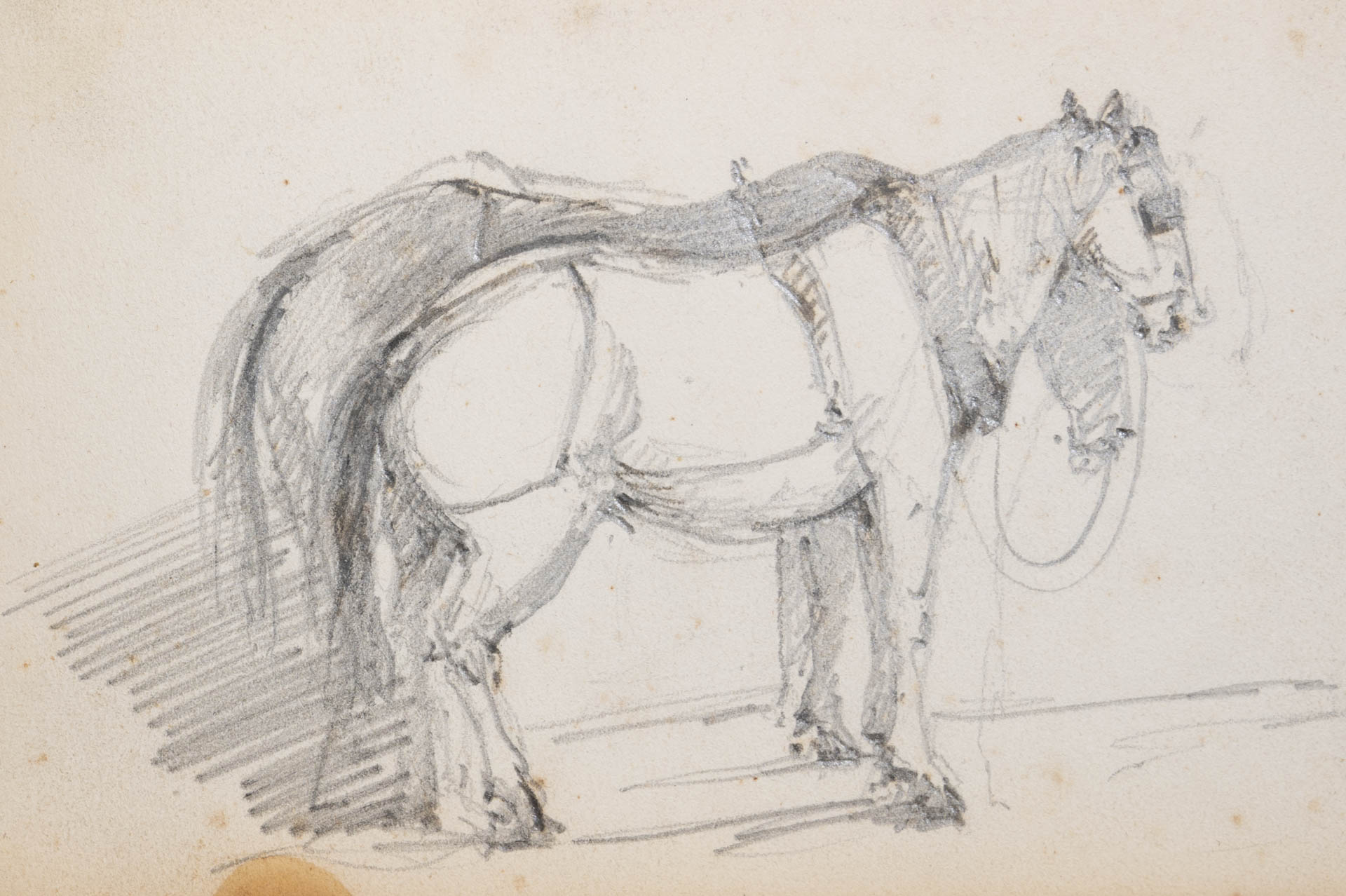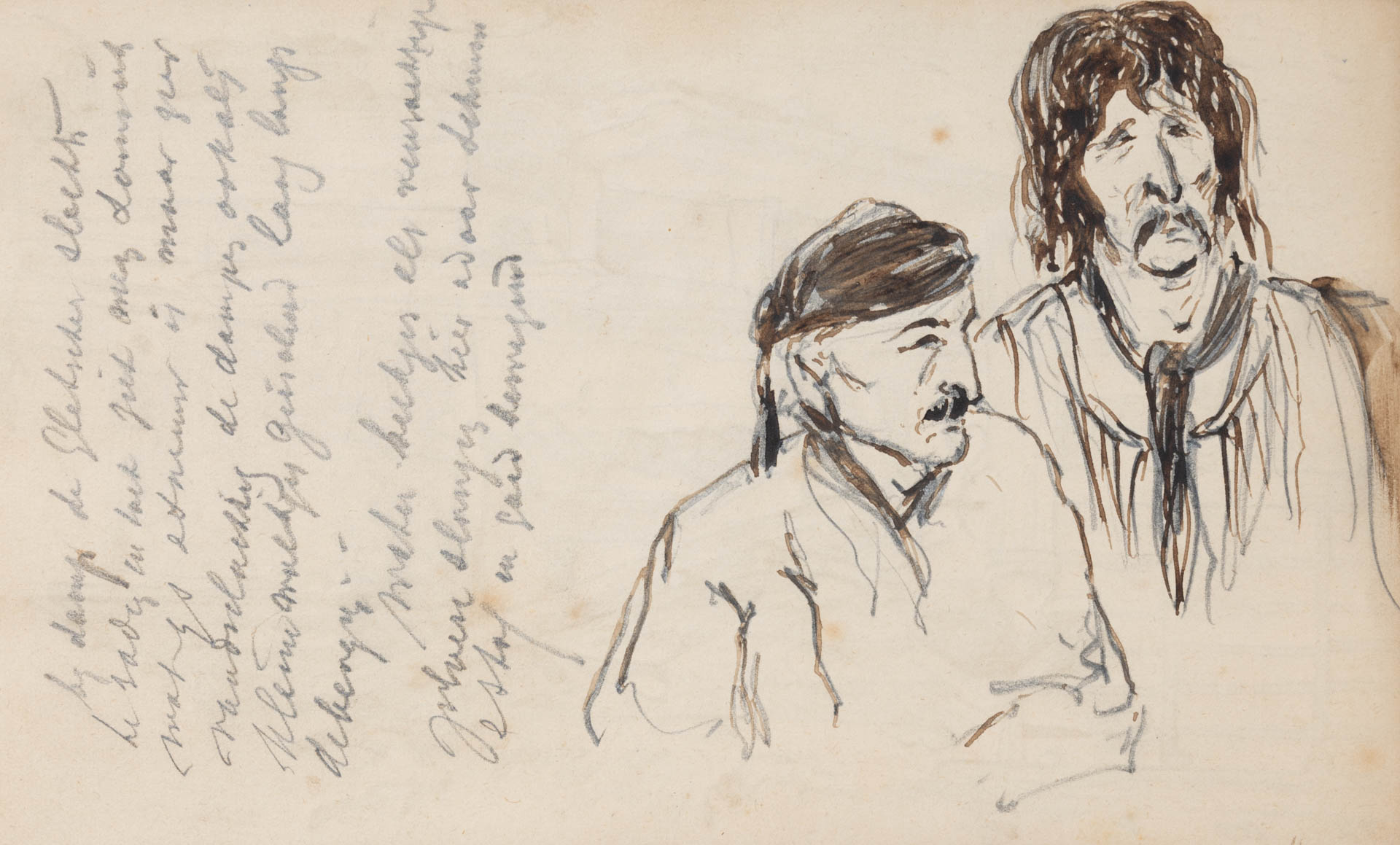 Skizzenbücher sind besonders spannend, da sie den unmittelbaren ersten künstlerischen Ausdruck zeigen. Sie entstehen spontan aus der direkten Beobachtung und haben eine Bandbreite von der Umrisszeichnung bis hin zu einer ausgearbeiteten Studie. Verschiedene Techniken werden angewandt: Bleistift, Kreide, Feder, Pinsel – in Sepiabraun, Schwarz oder mit Aquarellfarbe.