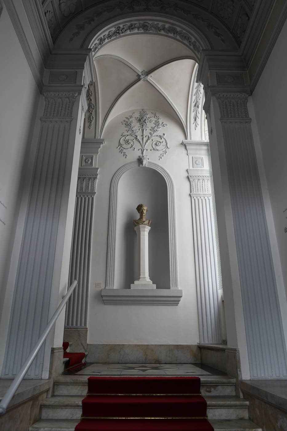 Nach Tradition des niederländischen Klassizismus erhält das Haus hohe, lichtspendende Fenster. Auch das stattliche hölzerne Treppenhaus ist hell beleuchtet durch den bekrönenden Aufbau auf dem Dach (sogenannte Laterne). Im Inneren ist das Haus in Vestibül und auf der für den Empfang von Besuchern gedachten Beletage mit reichem Stuckornament ausgestattet.