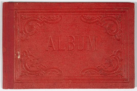 Einband: rotes Leder, in Prägedruck „Album“, roter Leinenrücken