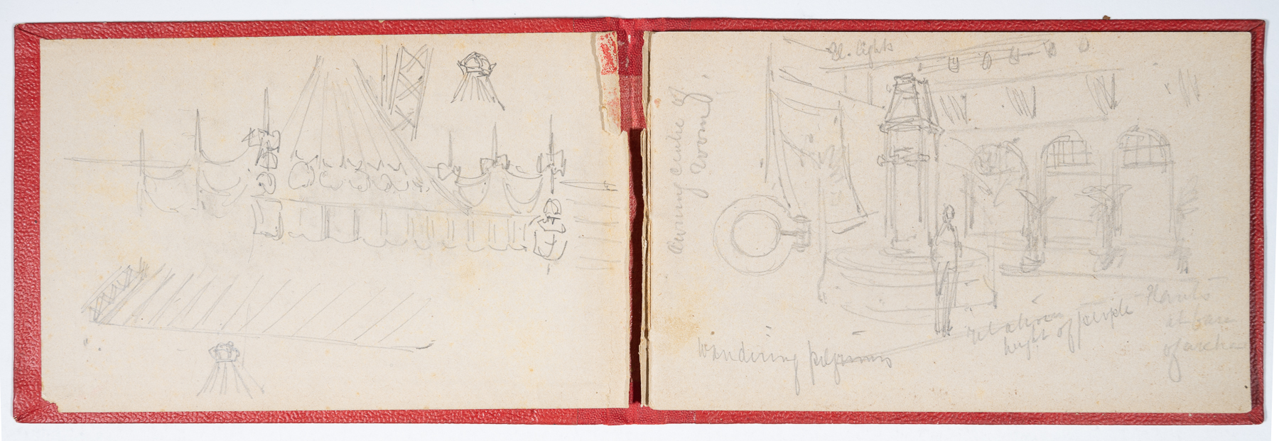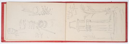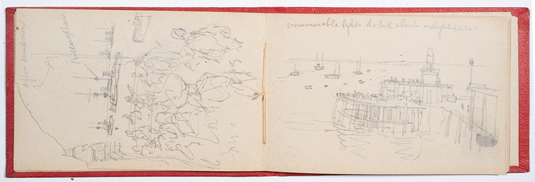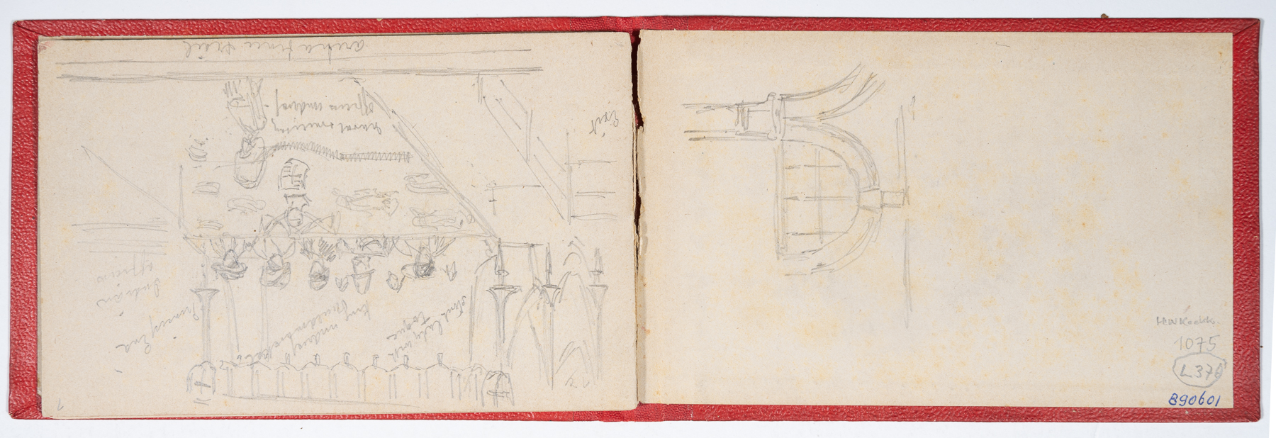 Motive: Architektur, Figuren, Porträtköpfe, Notizen in englischer Sprache