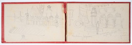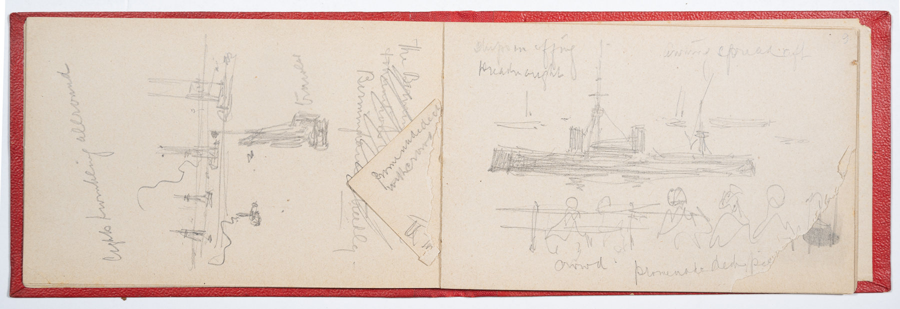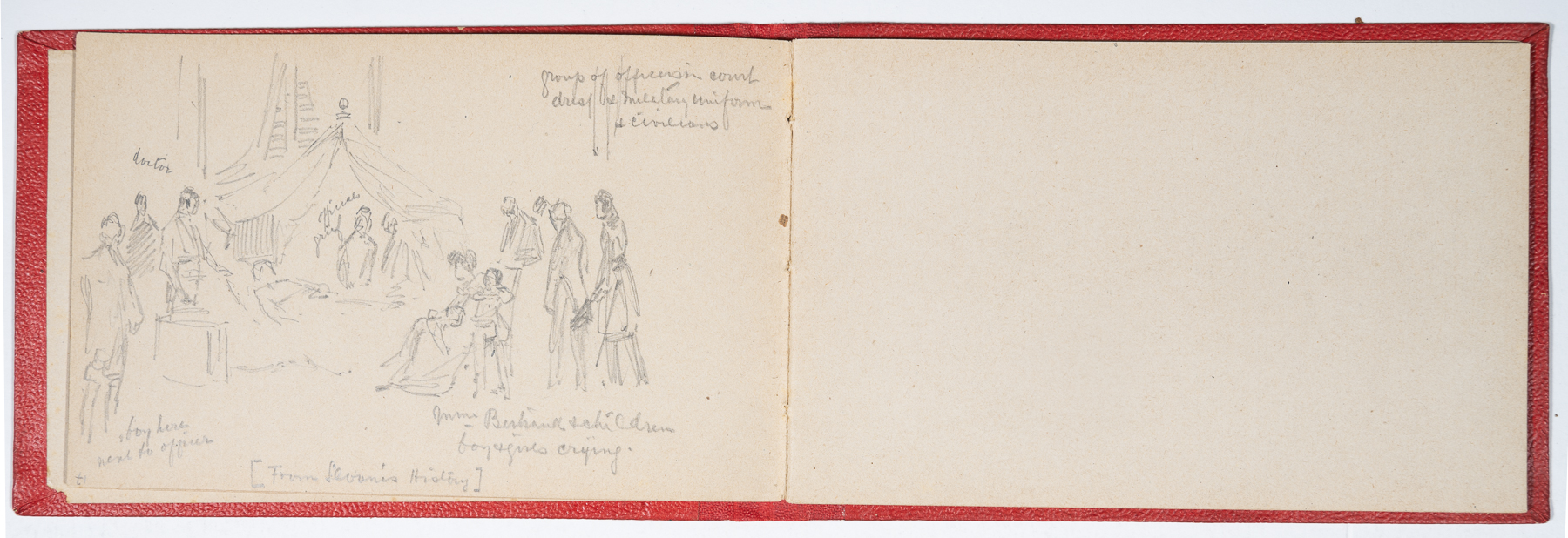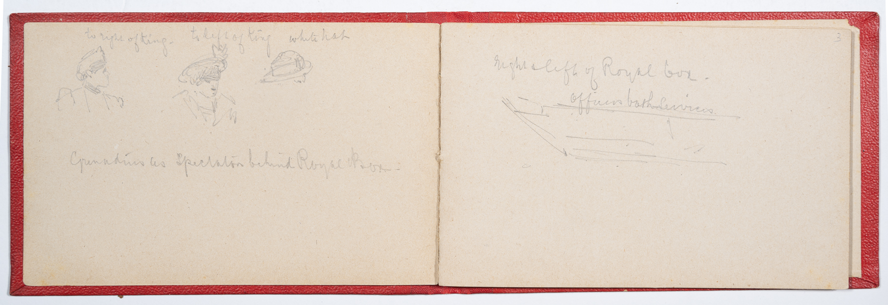 Hermanus Willem Koekkoek macht die Welt des Militärs zu seinem künstlerischen Thema. In seiner Zeit in London ist er als Zeichner am königlichen Hof zugelassen. Das Skizzenbuch stammt aus dem Jahr 1914, der Londoner Zeit. Den Motiven nach sind es vorbereitende Zeichnungen für die Beiträge in den „Illustrated London News“.