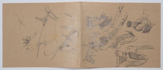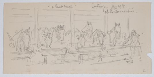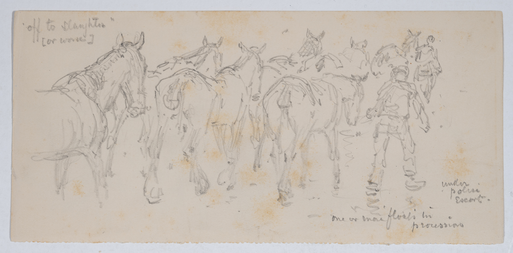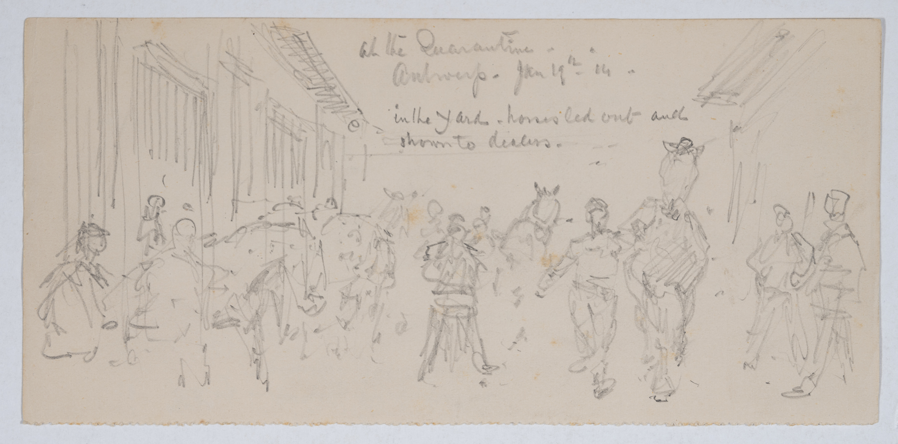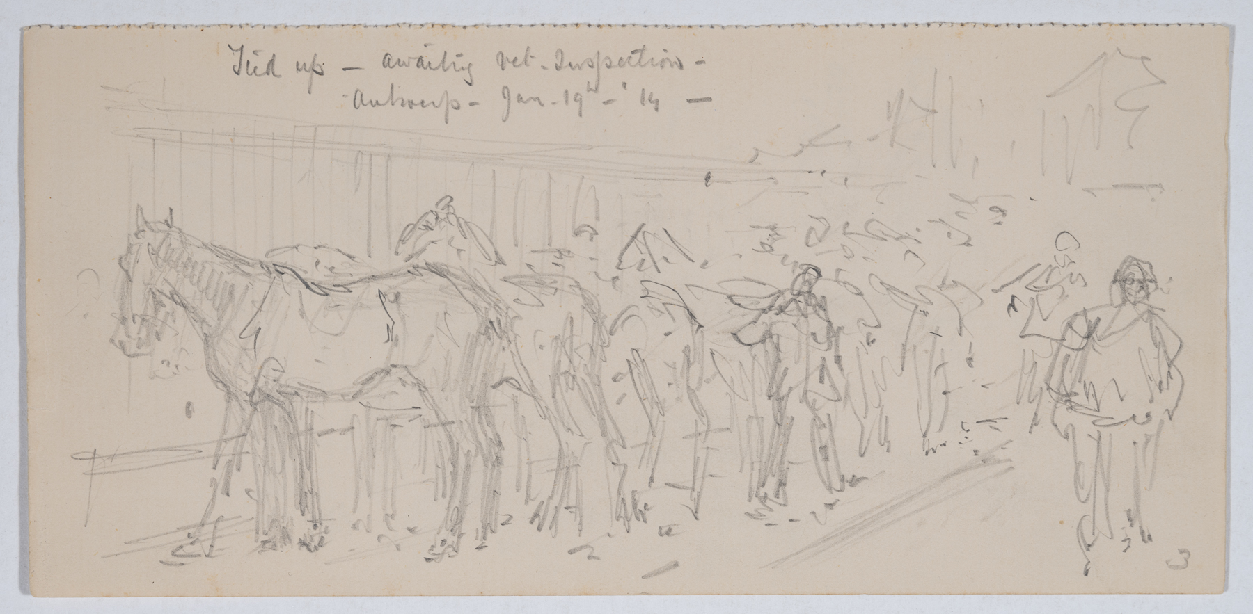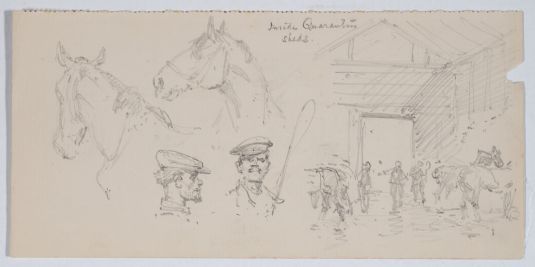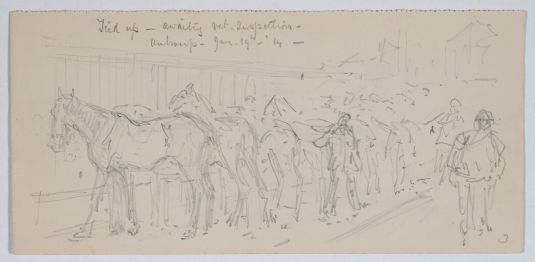 Hermanus Willem Koekkoek macht die Welt des Militärs zu seinem künstlerischen Thema. In seiner Zeit in London ist er als Zeichner am königlichen Hof zugelassen. Das Skizzenbuch stammt aus dem Jahr 1914, der Londoner Zeit. Den Motiven nach sind es vorbereitende Zeichnungen für die Beiträge in den „Illustrated London News“.