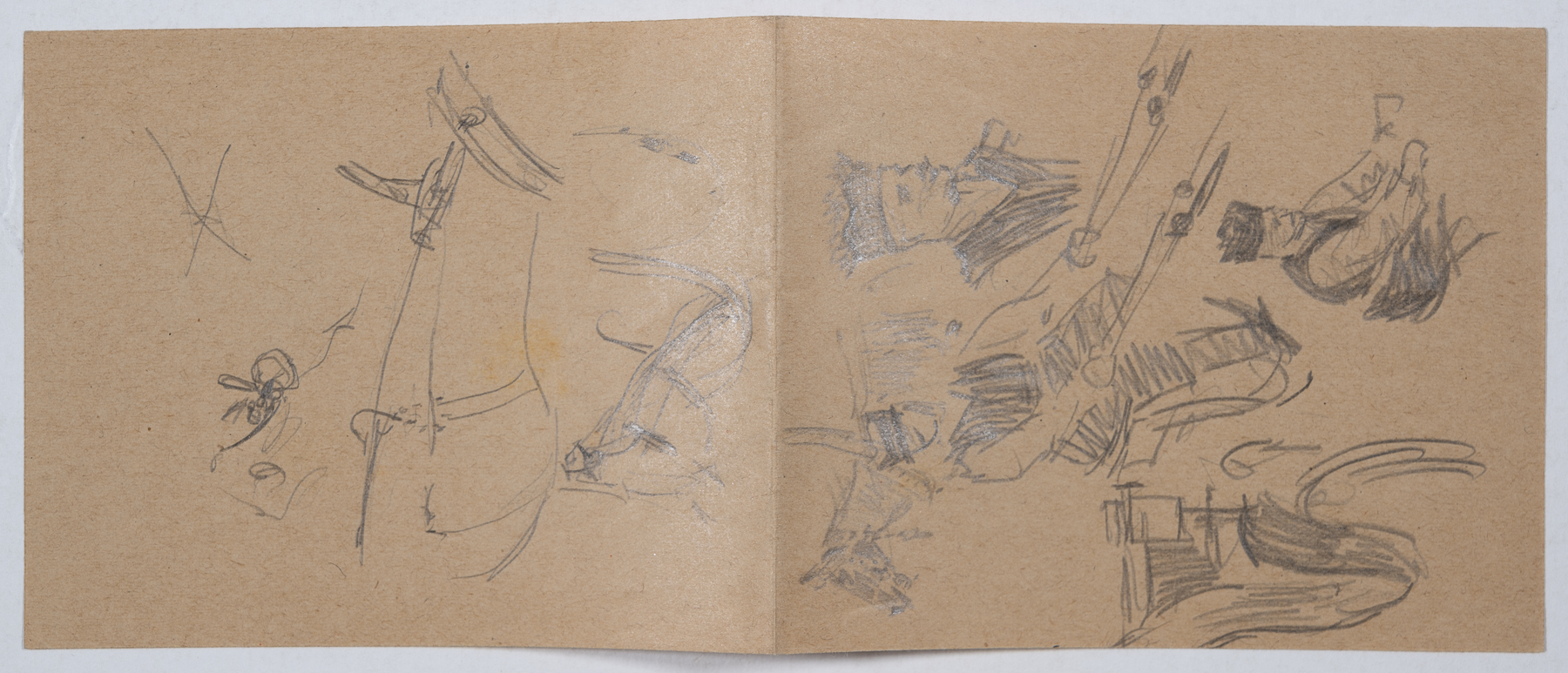 Skizzenbuch mit ca. 100 Blättern, davon etwa 60 mit Zeichnungen