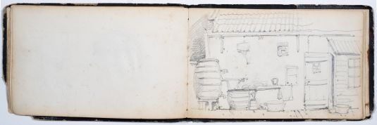Skizzenbuch mit 9 Blättern, ein eingelegtes loses Blatt