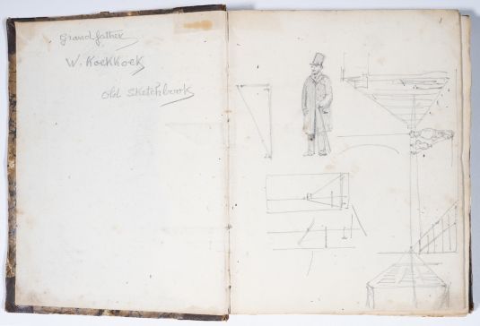 Bezeichnet Einband Innen von der Enkelin Hermie Koekkoek: Grandfather W. Koekkoek old sketchbook