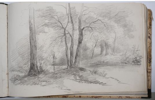 Das Werk des Landschaftsmalers Cornelis Lieste ist von B.C. Koekkoek beeinflusst, wenn auch ein direkter Kontakt der beiden Maler nicht dokumentiert ist. 1840 unternimmt er Studienreisen nach Belgien und Deutschland. Dabei besucht er höchstwahrscheinlich auch B.C. Koekkoek. Aus dieser Zeit stammt das vorliegende Skizzenbuch. Einige weitere Zeichnungen in der Museumssammlung stammen von einem Reisebegleiter und zeigen fast identische Motive. Letztere sind 1841 datiert und geben damit weiteren Rückschluss auf die Entstehungszeit des Skizzenbuches.