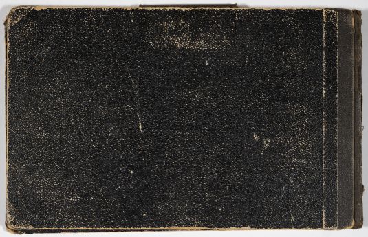 Einband: Karton, schwarzes Leder, schwarzer Leinenrücken