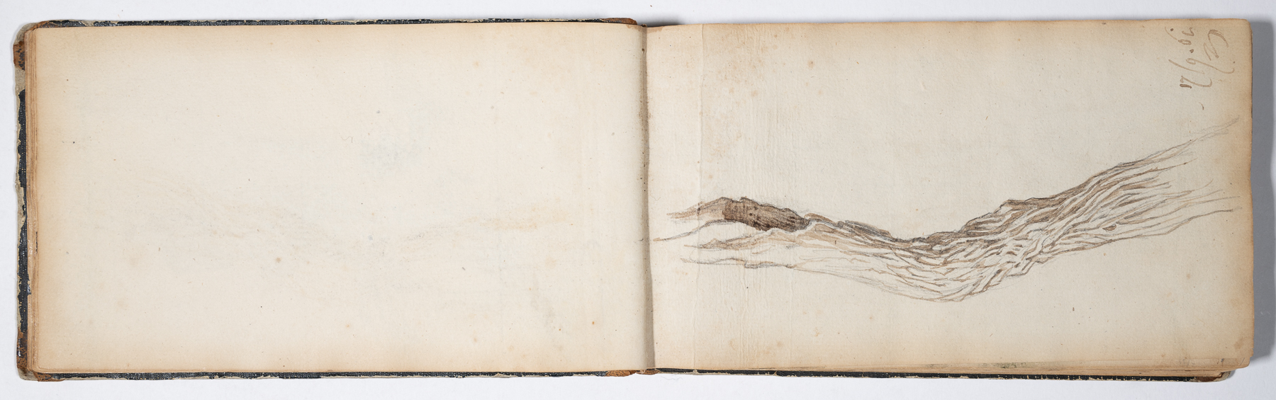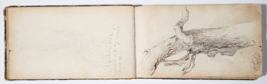 Umfangreiches Skizzenbuch mit 100 Blatt, alle gefüllt mit Skizzen, Tagebucheintragungen und Notizen, im hinteren Teil ein längerer Text