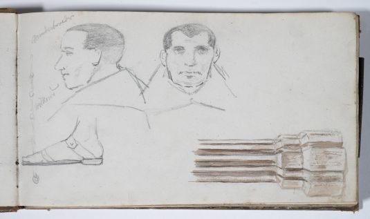 Motive: Figurenstudien, topografische Studien Oberlausitz und Niederschlesien, Rheinland (Burgen), Figurenstudien, Details von Möbeln und Gerätschaften, Pferdegeschirr und Wagen, einige Kopien nach niederländischen Kunstwerken