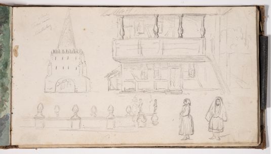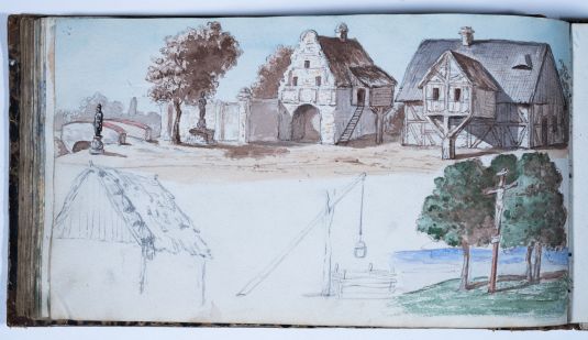 Motive: Figurenstudien, topografische Studien Oberlausitz und Niederschlesien, Rheinland (Burgen), Figurenstudien, Details von Möbeln und Gerätschaften, Pferdegeschirr und Wagen, einige Kopien nach niederländischen Kunstwerken