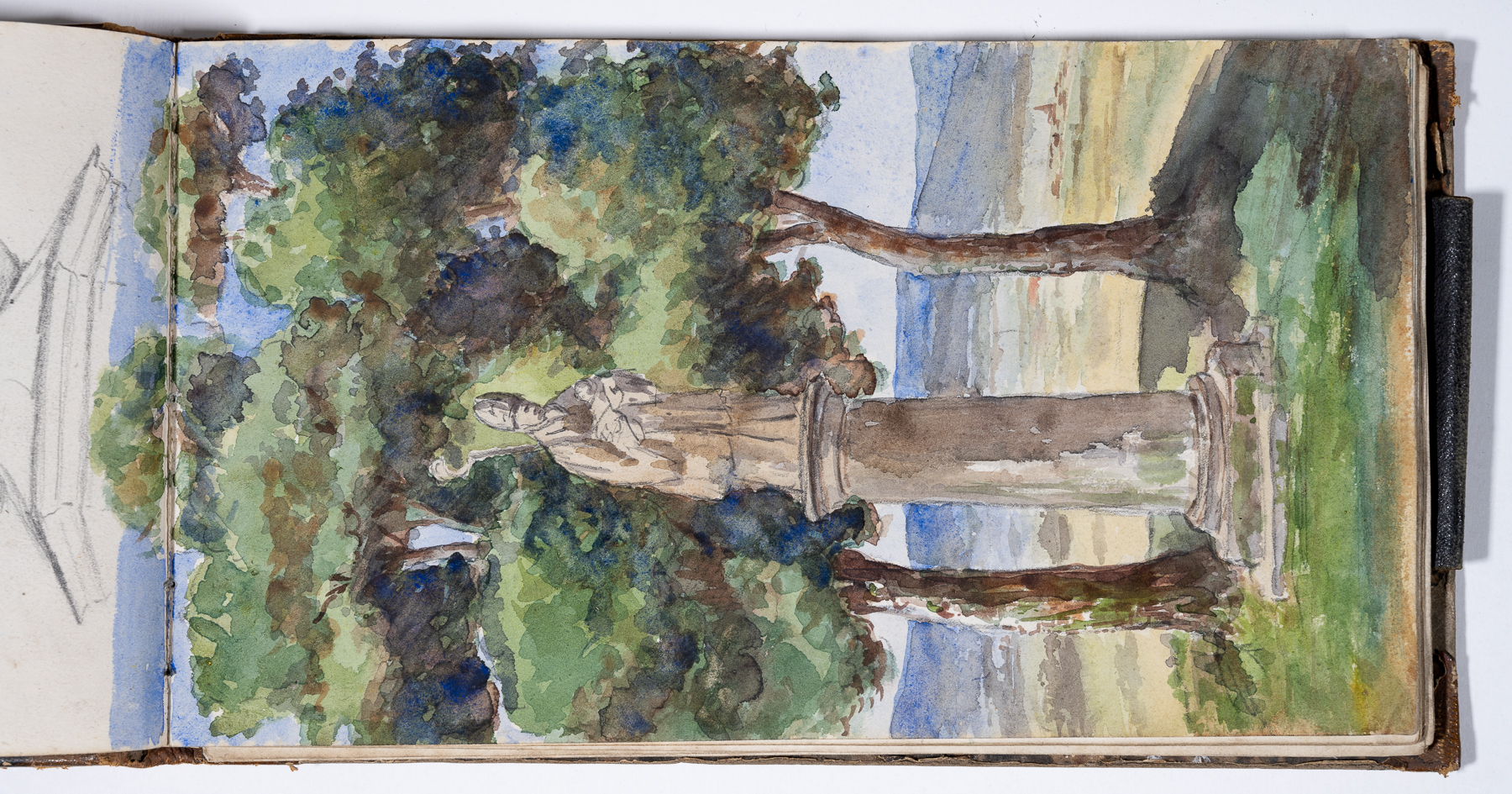 Skizzen mit Bleistift, Kreide, teilweise farbig aquarelliert